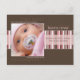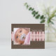 Anúncio de nascimento fotográfico "Listras de Inverno" marrom/rosa. Personalize este modelo de cartão postal fotográfico moderno e sofisticado com a foto e detalhes do seu menino para um anúncio de nascimento ímpar.