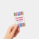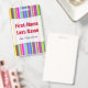 Este design de crachá apresenta um padrão atraente de listras (ou linhas) de várias cores. Ele também apresenta um nome personalizável em texto de cor vermelha dentro de uma área de cor clara. Há também uma mensagem personalizável sob o nome que pode mostrar informações como um título de trabalho, ou uma profissão, ou o nome de uma empresa/negócio. [~Z0000176]