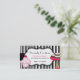Cartão de visita bonito da padaria feito em um fundo listrado preto e branco, com uma banda corajosa preta, através do meio, e uma área de texto branca afiada preta decorativa, na parte dianteira. Os gráficos doces de um rosa, branco, e cupcake do verde e um suporte do bolo com brownies, decoram um ou outro lado, do cartão. O texto é inteiramente customizável serir suas necessidades do negócio. Excelente para em casa padeiros demasiado.