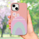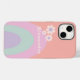 Linda capa de telefone personalizada e feminina retrô ideal para uma vibe feliz de verão para meninas. Design simples de arco-íris e margarida em belas cores pastéis, incluindo rosa, laranja, verde e roxo. Use o modelo fácil de navegar para adicionar o nome de uma criança em tipografia groovy dos anos 1970 e criar um presente personalizado. Arte original e única da artista Catherine Sweetman