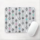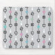Mousepad com listras da boliche imprime no fundo cinzento. As listras com caixas, os pinos de boliche, e a estrela marc modelaram as bolas de boliche.