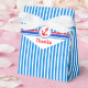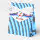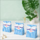 Listras azuis náuticas com caixa de propina vermelha da âncora. Lê Obrigados. Ideal para aniversários temáticos náuticos, chás de fraldas e outras celebrações temáticas no mar ou na costa. Desenhada por Sarah Trett.