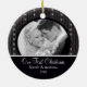 Nossos primeiros enfeites de natal da foto caracterizam um fundo listrado preto & branco bonito com uma banda preta! Personalize com sua informação e data e você são todos ajustam-se para ir! Presente datado maravilhoso da lembrança para seu primeiro Natal e uma grande adição a você coleção dos enfeites de natal.
