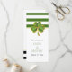 Listras verdes e trevo cerimônia de casamento irlandesa e programa de festas. Apresenta um trevo ou uma pedra-do-mar com contorno de ouro e listras verdes e brancas.