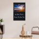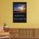 Poster mostrada com uma impressão fotográfica de um lindo pôr do sol da praia. O fundo poster é uma cor de carvão profunda. Personalize este item ou comprar como está. Imagem do stock