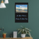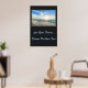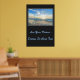 Poster mostrada com uma impressão fotográfica de um lindo pôr do sol da praia. O fundo poster é uma cor de carvão profunda. Personalize este item ou comprar como está. Imagem do stock