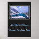 Poster mostrada com uma impressão fotográfica de uma bela cena de lago montanhês de inverno. O fundo poster é uma cor de carvão profunda. Personalize este item ou comprar como está. Imagem do stock freepik.com