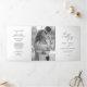 Este elegante programa de casamento de fotos em preto e branco é triplo e apresenta 6 páginas para ajustado de todas as suas informações da cerimônia de casamento. O painel do meio traseiro tem sua foto para um toque personalizado.