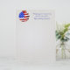 Jornal patriótico perfeito de Natal, com um enfeite de bandeira americana em uma cinza desmaia, em fundo listrado vertical, com a saudação "Desejar sua paz e sua paz e amar esta temporada de festas".