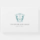 Convide seus convidados de casamento para compartilhar seus desejos e sabedoria com este livro de convidados de praia, apresentando uma crista monograma em azul-turquesa. Seus nomes e data de casamento aparecem embaixo da cinza de carvão clássico. O livro reverte para uma cor consistente. Para ver mais temas de casamento visite www.zazzle.com/dotellabelle Arte e design por Victoria Grigaliunas