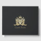 O Family Crest Guest Book é totalmente personalizável e pode ser usado para casamentos, aposentadoria, grande abertura, evento corporativo ou para qualquer outra ocasião. Projetado por Norman Reutter.