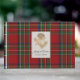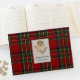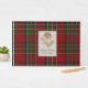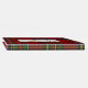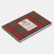 O casamento da Highland inspirou o livro de hóspedes feito no padrão clássico de xadrez vermelha, verde, azul, amarelo, preto e branco da Royal Stewart tartan. Uma área de texto em formato dourado, na frente do livro, tem gráficos de um estilo de ouro e texto personalizado preto prontos para personalizar.