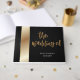 Caligrafia elegante, livro de hóspedes preto e ouro. Pode ser personalizado.