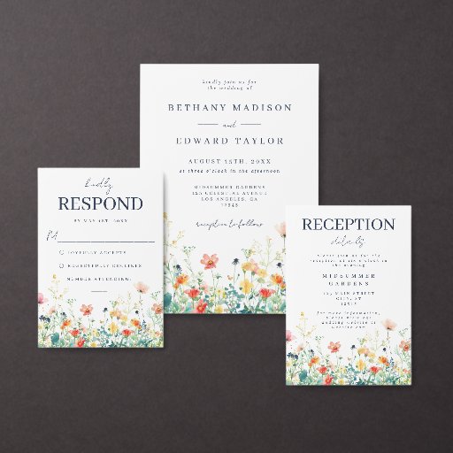 Esta coleção apresenta uma fileira de flores silvestres delicadas em cores primavera brancas. Perfeito para casamentos casuais ao ar livre.