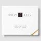 Um livro hóspede monograma moderno e elegante, desenhado com um estilo limpo, moderno e minimalista. Um emblema elegante do estilo monograma de serifa apresentado no centro com uma listras de ouro elegante e suja que cria um design de livro de hóspedes de monograma elegante, moderno e sofisticado. Este design do livro de hóspedes do casamento é adequado para um tema de casamento minimalista e elegante. O cartão-postal do livro convidado é completamente personalizável com as suas próprias informações. Você pode personalizar o tamanho do texto, a cor do texto, a fonte e o layout para sua preferência de design de casamento pessoal. Temos uma série de produtos correspondentes para este tema de casamento branco, preto minimalista e elegante.