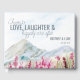 Livro de hóspedes do casamento de montanha, escrito com "aplausos para amar risos e alegremente para sempre" e uma paisagem típica de serras azuis e prados cor-de-rosa de flor silvestre. Personalize com a ferramenta design se você quiser mover ou editar qualquer texto não modelado. A beleza da natureza inspirou um design cênico - perfeito para destinos ao ar livre, refúgios montanhosos e refúgios de parques rurais ou cinzas azuis empoeiradas e temas cor-de-rosa. Por favor, procure na minha coleção Mountain Meadow itens correspondentes ou envie-me uma mensagem para criar os modelos de que necessita.
