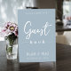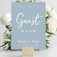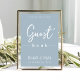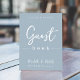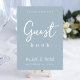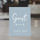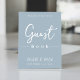 Esta design apresenta uma simples cartaz de cartaz moderna do casamento, citação do livro convidado do livro de hóspedes dizendo, azul mínimo e poeirento minimalista, um cartaz de bar convidado de recepção, estilo mínimo e azul empoeirado, letra de texto moderna do roteiro de caligrafia, uma letra elegante de tipografia na moda, um cartaz de convidado simplista, um estilo moderno de livro de hóspedes, um cartaz personalizado