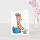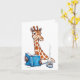 Girafa está lendo um livro e bebendo uma bebida quente enquanto olha para cima... talvez para dizer feliz aniversário ou pensando em você? ou se recupera logo? ou...??? A placa é dentro de vazio. O trabalho artístico original foi criado manualmente por Sue Clancy usando tinta e guache.
