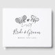 Um livro de hóspedes de casamento bonito com borboletas divertidas. Ilustração romântica com duas borboletas apaixonadas. Design de batida com tipografia elegante. Opções de preto e branco ou cor.