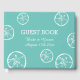 Livro de hóspedes do casamento de praia com design de areia. Paleta de cores azul-lacrimejante e branca. Modelo elegante com nomes de noiva e noiva. Parte da coleção correspondente. Perfeito para casamentos de verão e destinos tropicais na Flórida e em outros lugares.