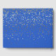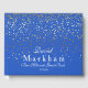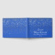 Este livro de visitas é mostrado em Azul Real com uma cortina de estrelas pequenas douradas na frente e atrás estão espalhadas por todo o livro de visitas. A frente tem texto com o seu nome personalizado em uma fonte fancy, seu sobrenome em negrito junto com a data personalizada abaixo.