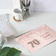 Um livro de convidados para uma festa de aniversário de 70 giro e glamourosa. Um fundo rosa de ouro falso com rosa dourado, pingos cor-de-rosa, aparência de pingar tinta. Personalize e adicione um nome e data. O nome é escrito em ouro rosa escuro com um moderno estilo escrito à mão. O número 70 é escrito com uma fonte no estilo do balão.