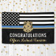 Este design apresenta uma bandeira da polícia com listras pretas e brancas, e uma fina faixa azul de linha também. Um excelente de dizer parabéns ao novo formando da academia de polícia. Personalize com o nome do polícia graduado em ouro. Celebre este marco em estilo!