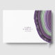 Nem todos os designs de casamento são criados iguais. Os layouts assimétricos para as peças neste impressionante conjunto de casamento provam que isso não é ruim! Bandas de cor onduladas em tons contrastantes de roxo violeta e verde com um centro de cristal brilhando formam um sotaque geode/agate na maioria das peças do conjunto. O 'Livro de Convidados' do casamento mostrado aqui mostra o acima mais uma modelo para adicionar uma mensagem pessoal na frente, seus nomes e data do casamento no cobrir traseiro. Procure ID647 para ver todas as peças de coordenação neste conjunto.