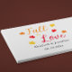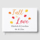 Presentes personalizados para o evento 'Se apaixonar' com paleta de cores outonais vermelho, laranja e amarelo com folhas de bordo. O texto pode ser personalizado para um casamento, chá de panela, chá de bebê ou qualquer outro evento