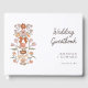 Livro de convidados de boho e tema do arco rústico com ilustração desenhada à mão da fita de terracotta com flores.
