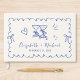 Livro de convidados de casamento, de creme leve, inspirado exclusivamente em retrato, com um quadro de onda azul francês adornado com arcos coquetes, ilustrações desenhadas à mão branca de um coração, estrelas e óculos de vinho, e os nomes da noiva e do noivo em um roteiro lúdico divertido.