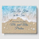 The playful and fun saying, Two less Fish in the Sea accent this wedding guest book on a background of blue water, beach sand, seashells, starfish and sand dollars, making it a perfect reminder of your beach, tropical or destination wedding. This wedding guest book is further personalized with the wedding date and the happy couple's new last name, making it a beautiful keepsake. If additional items are needed for your wedding just contact us at prettyfancyinvites@gmail.com with your request.