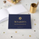 Um simples desenho de bar mitzvah azul marinho e dourado cuja única decoração é a estrela de Davi em folha de ouro falso na parte superior (e no verso e na lombada). Todo o texto está em letras maiúsculas douradas e pode ser editado. O fundo é azul marinho.