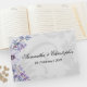 Este adorável livro de convidados de casamento com uma cor damasco elegante em cinzentos suaves e brancos, e um buquê roxo charmoso de frutas e flores ao longo da borda, foi especialmente criado para combinar com uma suite de artigos de casamento que você pode ver em cheio aqui: https://www.zazzle.com/collections/purple_floral_berries_and_gray_damask-119535815384688813