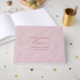 Crie uma boa saquê noiva. Este caderno de manutenção dá à sua família e amigos a oportunidade de expressar mensagens escritas para a noiva ler e lembrar durante anos. Design Floral. Rosa dourado mostrado. Você pode alterar o texto na parte frontal e personalizar o texto no painel lateral. Use a modelo para criar suas próprias cartas ao livro convidado da noiva.