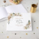 Adicione um belo detalhe ao seu dia especial. Este design do livro de hóspedes apresenta texto simples na moda com buquês botânicos boêmicos. Você pode personalizar as cores do texto e do texto. Mais designs de casamento estão disponíveis no meu compro BaraBomWedding.