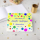 Círculos alegres de bolinhas em cores de festas, incluindo amarelo, verde, turquesa, azul, vermelho, laranja e rosa, são o tema desse livro convidado Quinceañera. Personalize o texto para sua ocasião especial.