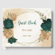 Belo livro de hóspedes do casamento outono com flores verdes esmeraldas e douradas beges com folhas verdes. São simulados os detalhes do brilho dourado. PARA MAIS PRODUTOS CORRESPONDENTES, clique na coleção acima ou entre em contato comigo