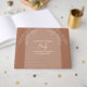 Crie um lindo presente de casamento para a noiva. Este caderno de lembranças dá à sua família e amigos a oportunidade de expressar mensagens escritas para a noiva ler e lembrar por anos. Design floral. Cor marrom moca mostrada. Personalize a frente e a lateral do livro com o texto desejado. Use o modelo para criar suas próprias cartas florais para o livro de visitas da noiva.