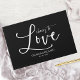 Este elegante livro de hóspedes de caligrafia tem um design simples e moderno, fazer que seja a escolha perfeita para um casamento bonito e chique. A design apresenta seu nome e data de casamento em tipografia minimalista e uma escrita manuscrita romântica e caprichosa. O sofisticado esquema de cores preto-e-branco adiciona um toque de sofisticação ao seu dia especial.