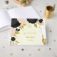 Flores românticas, pretas e cor-de-rosa, com folhas de ouro, livro de hóspedes botânico.. Os detalhes da brilha são simulados.