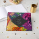 A pintura de óleo multicolorido inspirou design floral botânico em volta de diamante de cinza escura com texto esbranquiçado.