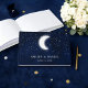 Livro de Convidados Celestial. Céu azul de água com estrelas e a lua.
