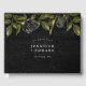 Tema gótico e rústico de halloween, guia de casamento com ilustração de rosas pretas.