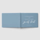 Este livro de hóspedes azul empoeirado exalta tranquilidade para um casamento costeiro de verão no mar. Personalize este guia azul-cinza com uma tipografia branca minimalista elegante para corresponder ao seu esquema de cores sereno.