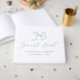 Comemore seu dia de casamento com este elegante livro de convidados de casamento, de pasta azul, com um arco desenhado à mão e "Livro de Convidados", exibido em um roteiro gracioso. Os sotaques azuis claros adicionam um toque romântico — perfeito para casamentos de primavera, cerimônias de jardim ou celebrações com uma paleta de cor pastel ou azul. Personalize o cobrir frontal com seus nomes e data de casamento, e adicione texto personalizado à coluna para obter um detalhe significativo e personalizado. Um eterno para capturar mensagens sentidas de seus convidados.