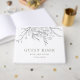 Moderno, brincalhão, e ainda sofisticado, este livro de convidados de casamento apresenta um buquê floral extravagante, emparelhado com a tipografia gráfica em verde-escuro, que coordena com o verde-claro no verso.