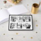 Livro de convidados de colagem de seis fotos, preto e branco. Ele apresenta seis fotos com uma borda preta ao seu redor e um quadro com seu texto.