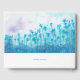 Livro de Convidado de Casamento com paisagem floral azul pálida com flores silvestres florescentes. Paisagem floral natural de Verão. Silhuettes de prados florais e céu. Pintar aquarela floral Livro Convidado de Casamento. Coleção de Flores Azuis.