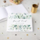 Este livro de hóspedes do casamento apresenta cor d'água eucalipto, verde botânico e folhas azuis-claras com caligrafia moderna.